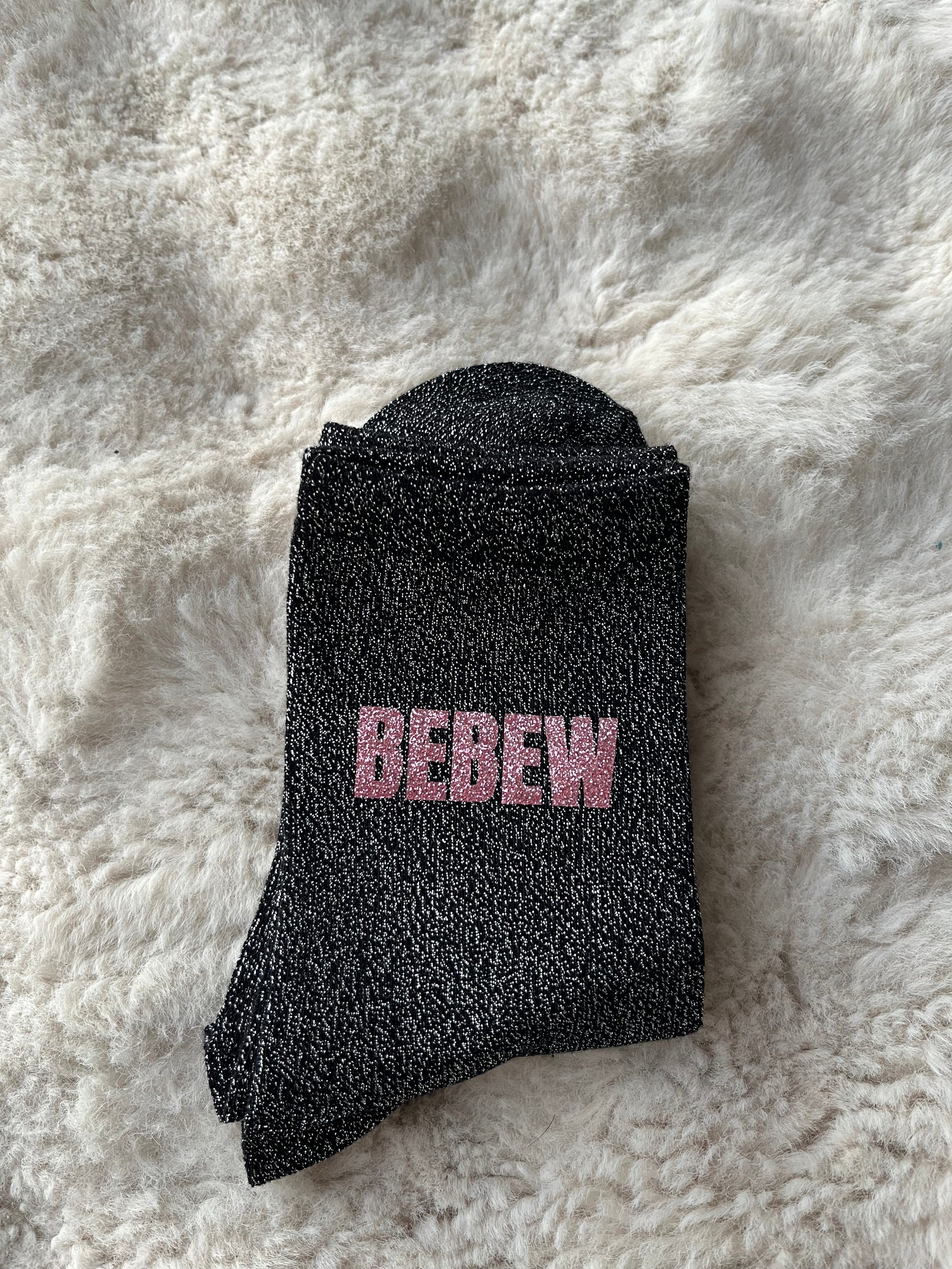 Chaussettes à paillettes " BEBEW " noir et rose