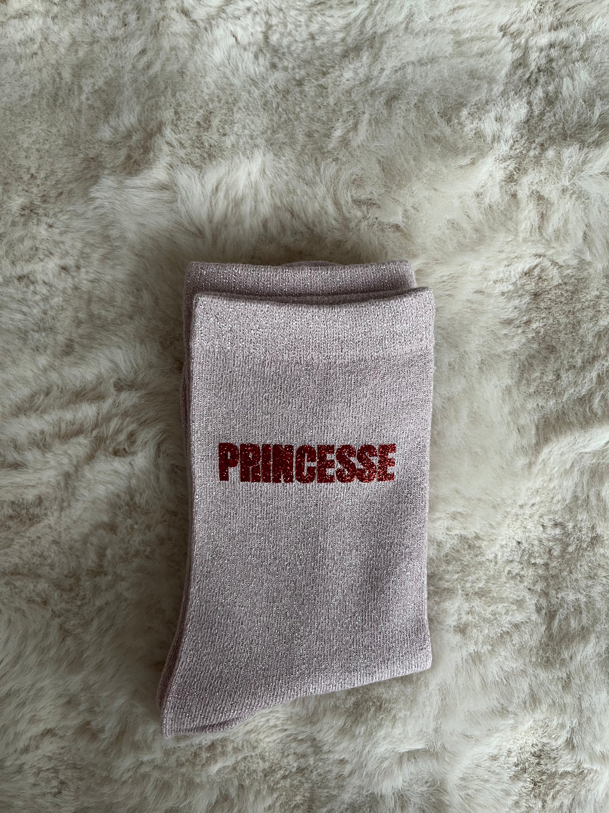 Chaussettes à paillettes " PRINCESSE " rose clair