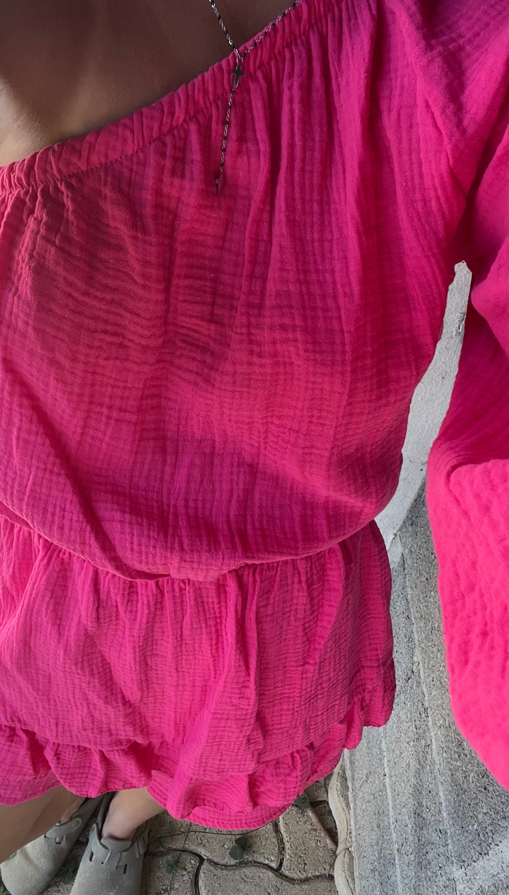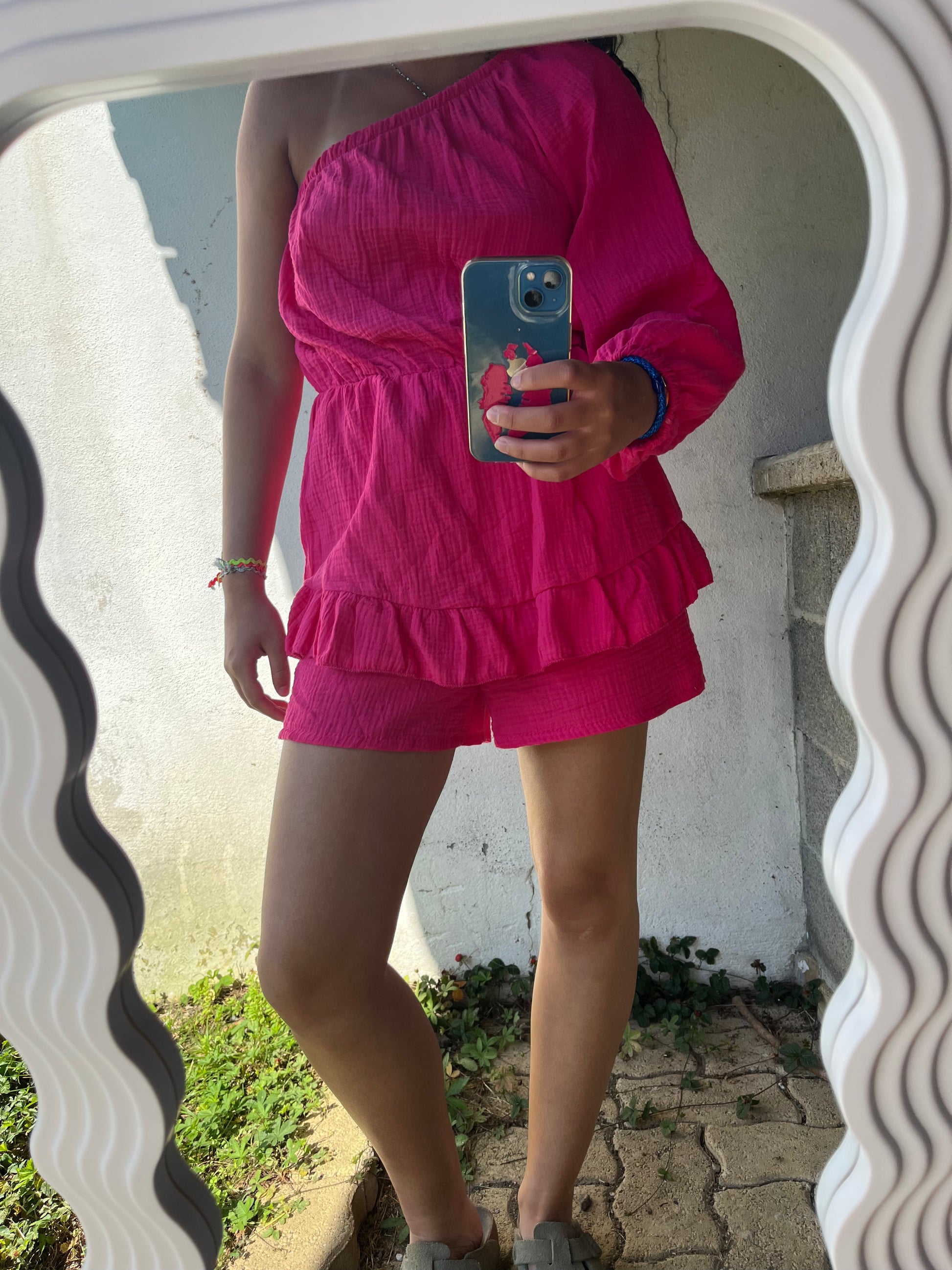 COMBI SHORT EN GAZ DE COTON ROSE