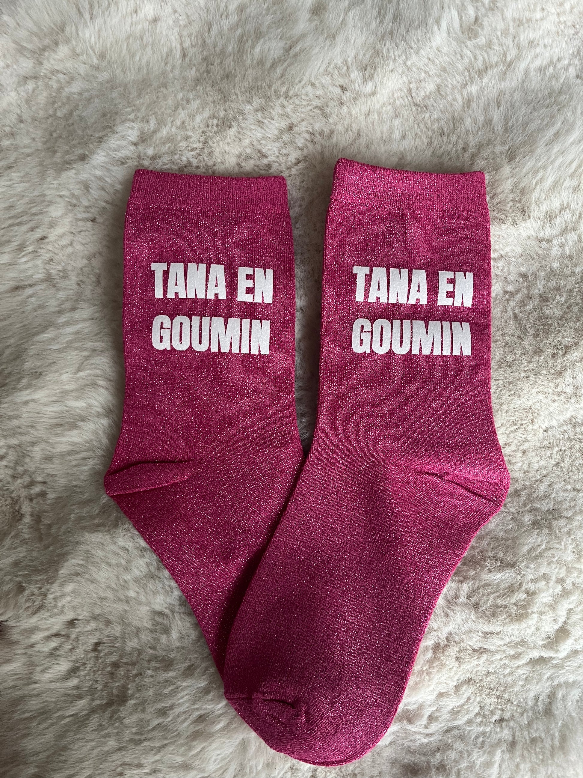 Précommande chaussettes à paillettes " TANA EN GOUMIN " rose