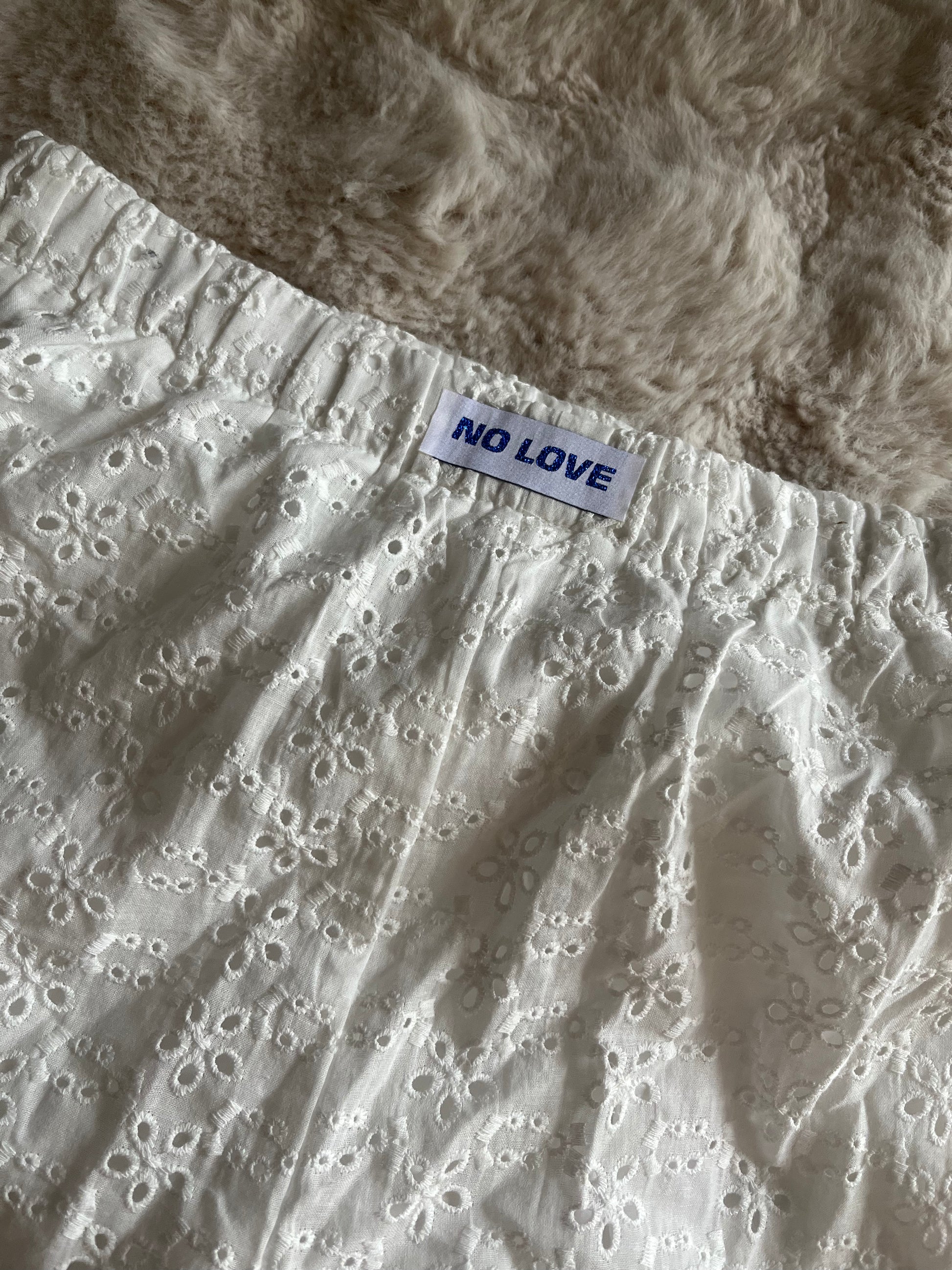 Pantalon en broderie blanche NOLOVE avec des paillettes bleu électrique pailleté.